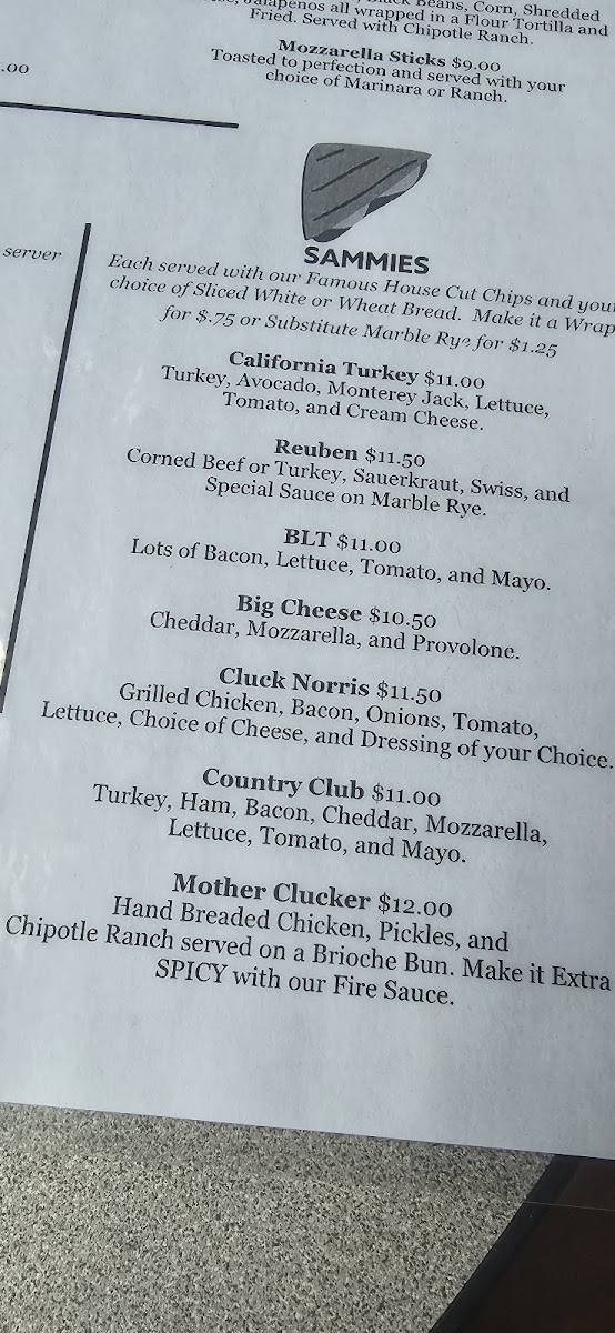Honey mustard, BBQ, or ranch. Make it spicy with our fire sauce. Served with house chips and garlic bread. Not in the mood for our famous golden brown fresh cut chips!? Trade them in! - Fruit salad, side salad, fried pickles, or French fries for an an additional charge.